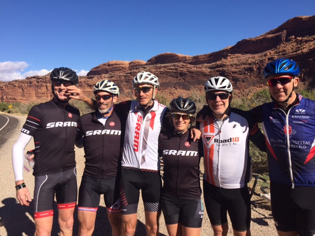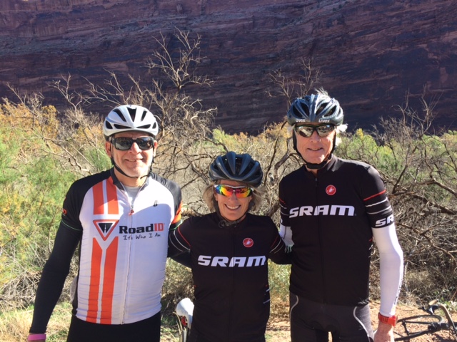 As it turns out, my favorite sports of skiing and cycling challenge healthy skeletal alignment, i.e., posture. Bending at the waste and sitting on my bike for long stretches, or flexing and countering my upper body to allow my legs to turn my skis on the slope while absorbing terrain can take its toll on my postural alignment. Yet, the pleasure I derive from these activities, being out in the great outdoors with clients, family and friends; the exhilaration of powder washing my face, or great stretches of scenic roadway passing by as I peddle my bike is inimitable. That’s why I went to Moab in the first place! We cycled 160 miles in three and a half days with cycling masters including the host of the Aspen Sports Performance camp, Chip Chilson, former professional cyclist and now NBC Commentator, Bob Roll, Alex Hagman, four time winner of the Leadville 100, Laurie Brandt, and RIO Cycling coach Roy Sturm. Cycling through an incredible desert landscape before the snow flies with a peloton of avid cyclists from around the country was a great way to transition to skiing!
